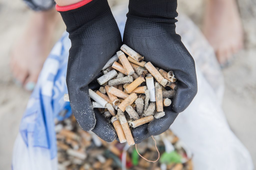 en sigarettenpeuk bestaat uit verschillende onderdelen. De resten van een gerookte sigaret (tabak en verbrand materiaal), een filter (vaak, niet altijd) en een middel dat alles bij elkaar houdt (zoals papier). Een sigarettenfilter is gemaakt van plastic (celluloseacetaat), wat slecht afbreekbaar is. Eén filter bestaat uit maar liefst 15.000 strengen kunststofvezel die wanneer een peuk in de natuur wordt weggegooid continumicroplastic vezels loslaten in het milieu. Eén peuk doet er zeven tot veertien jaar over om volledig afgebroken te worden. Met een totaal van ongeveer 5,6 miljard weggegooide peuken komt er naar schatting jaarlijks zo’n0,3 miljoen ton aan microplastic vezels in het aquatische milieu terecht door sigarettenfilters.